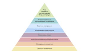 При этом не все исследования одинаково ценны. Существует иерархия доказательств. Самые надежные выводы делаются на основе: